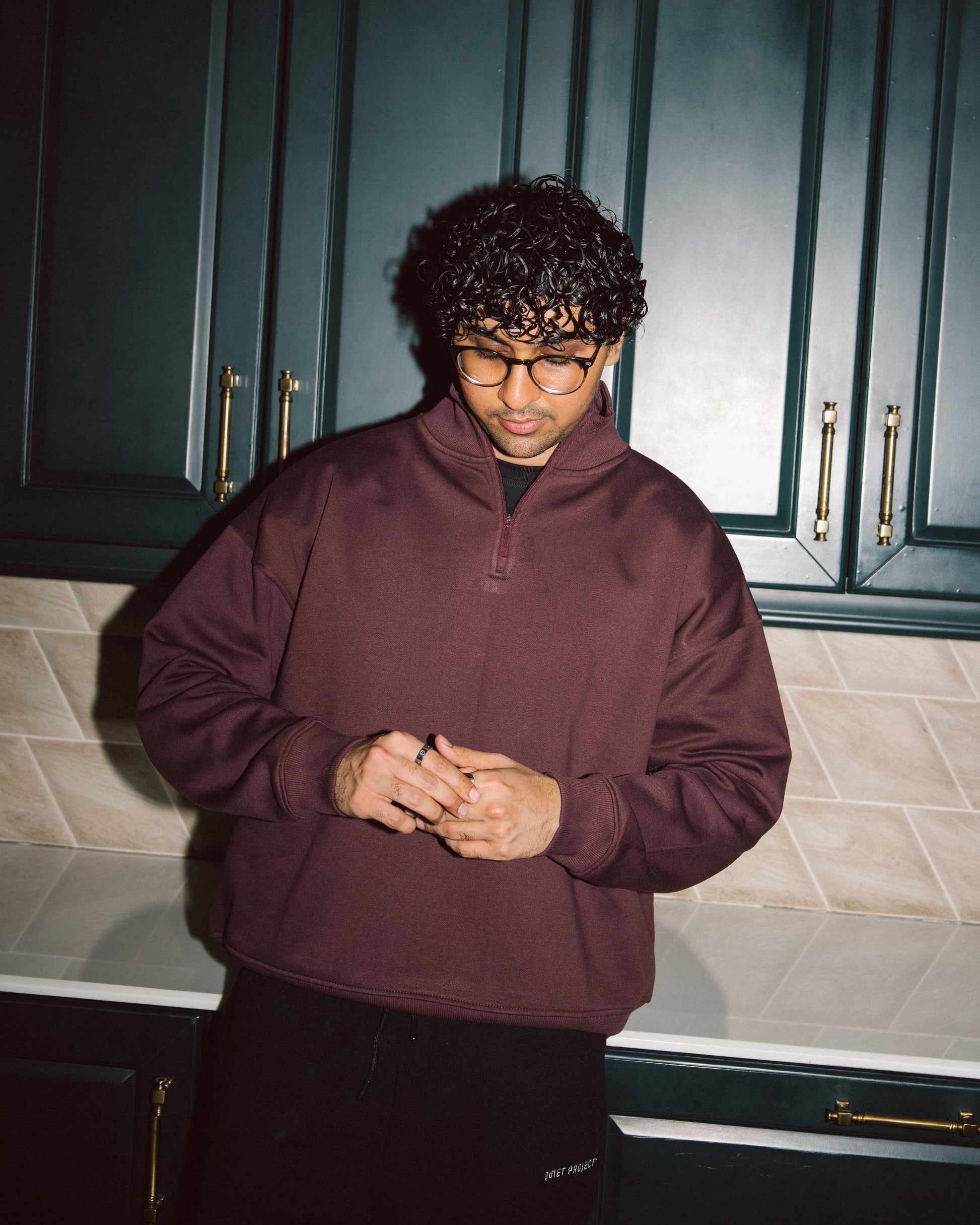 Our quarter zip is Designed with minimalism and Comfort in mind. Made from a luxurious fleece lined fabric for unmatched softness. The ribbed detailing along the collar, cuff and hem ensures a polished fit.